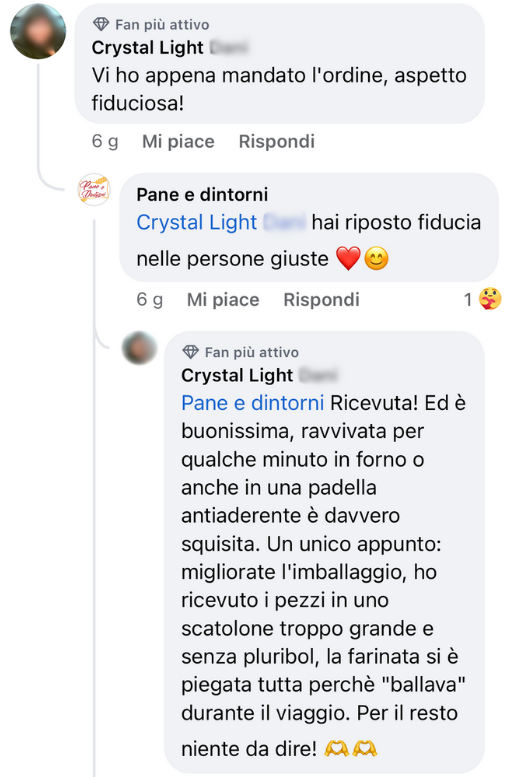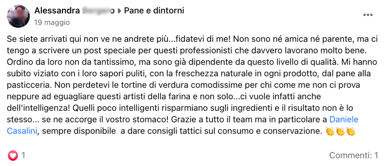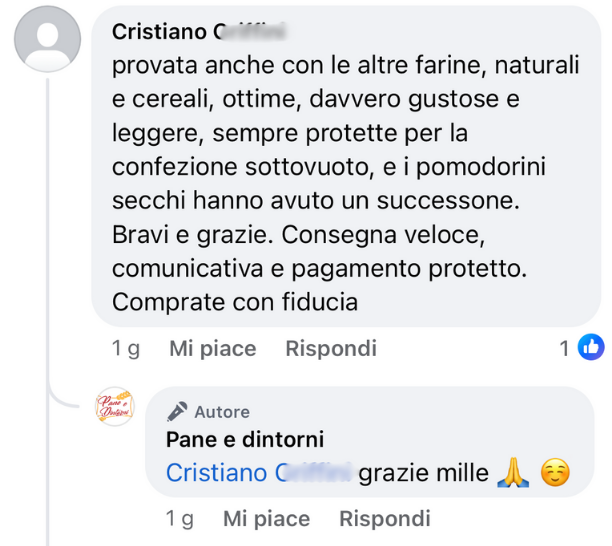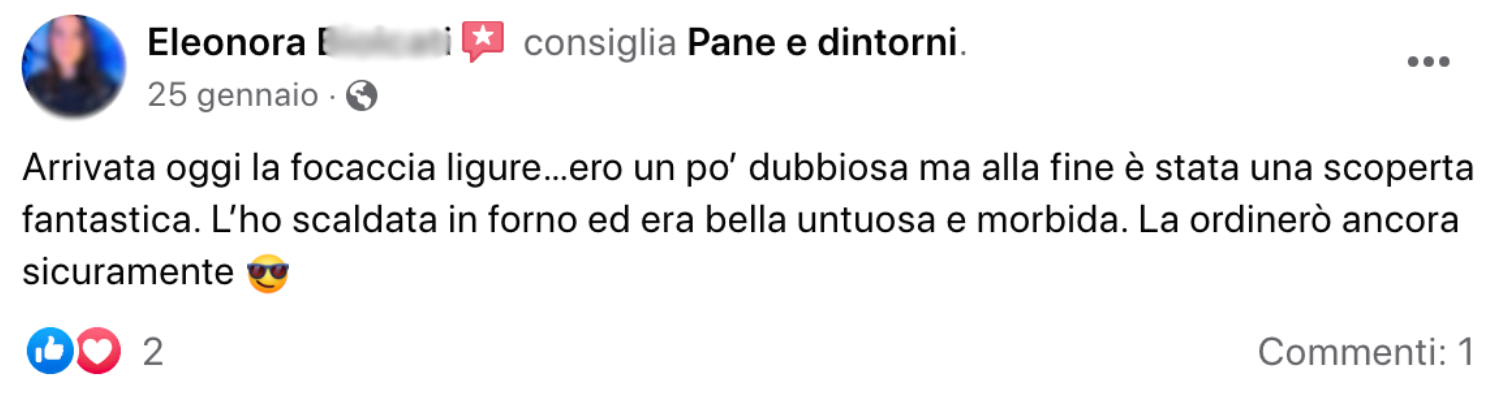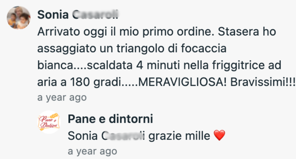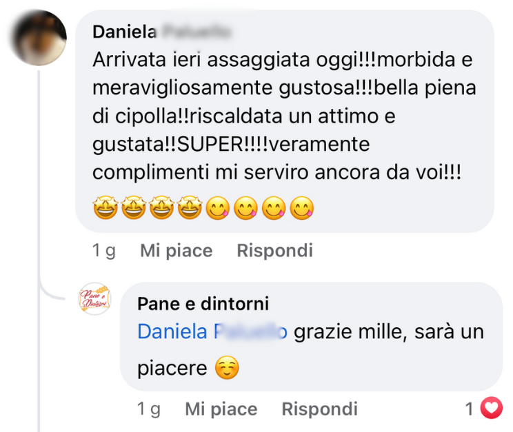 Ho ricevuto il mio primo ordine: consegna molto rapida, confezionamento sotto vuoto perfetto, ottima focaccia al formaggio!