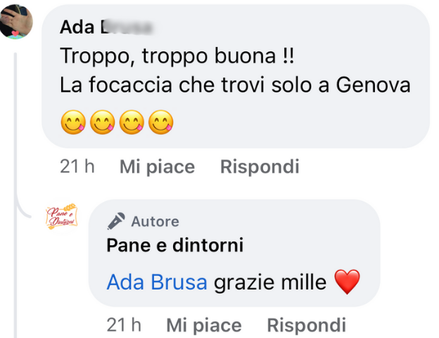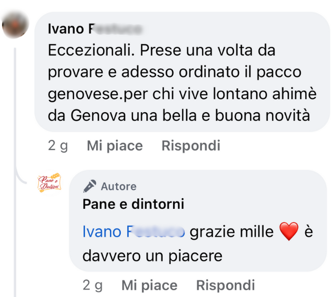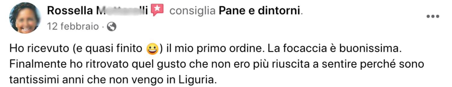 Ho ricevuto (e quasi finito ) il mio primo ordine. La focaccia è buonissima. Finalmente ho ritrovato quel gusto che non ero più riuscita a sentire perché sono tantissimi anni che non vengo in Liguria.Ho acquistato anche il pesto che ho trovato ottimo e molto delicato.