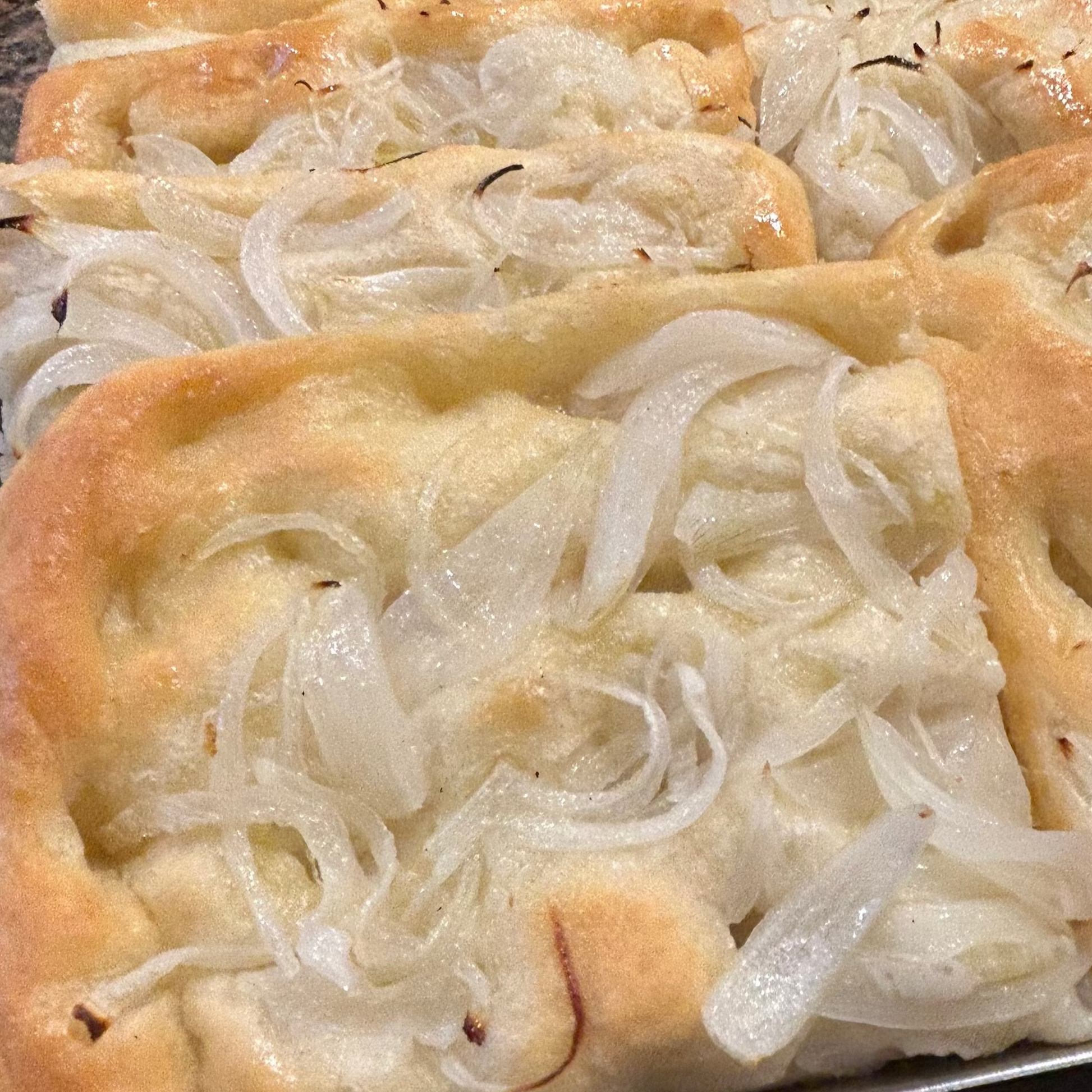 • 1kg Focaccia alle Cipolle: un’esplosione di sapore rustico, deciso ma assolutamente equilibrato: un’esultanza di gusto che ti farà innamorare a ogni boccone!